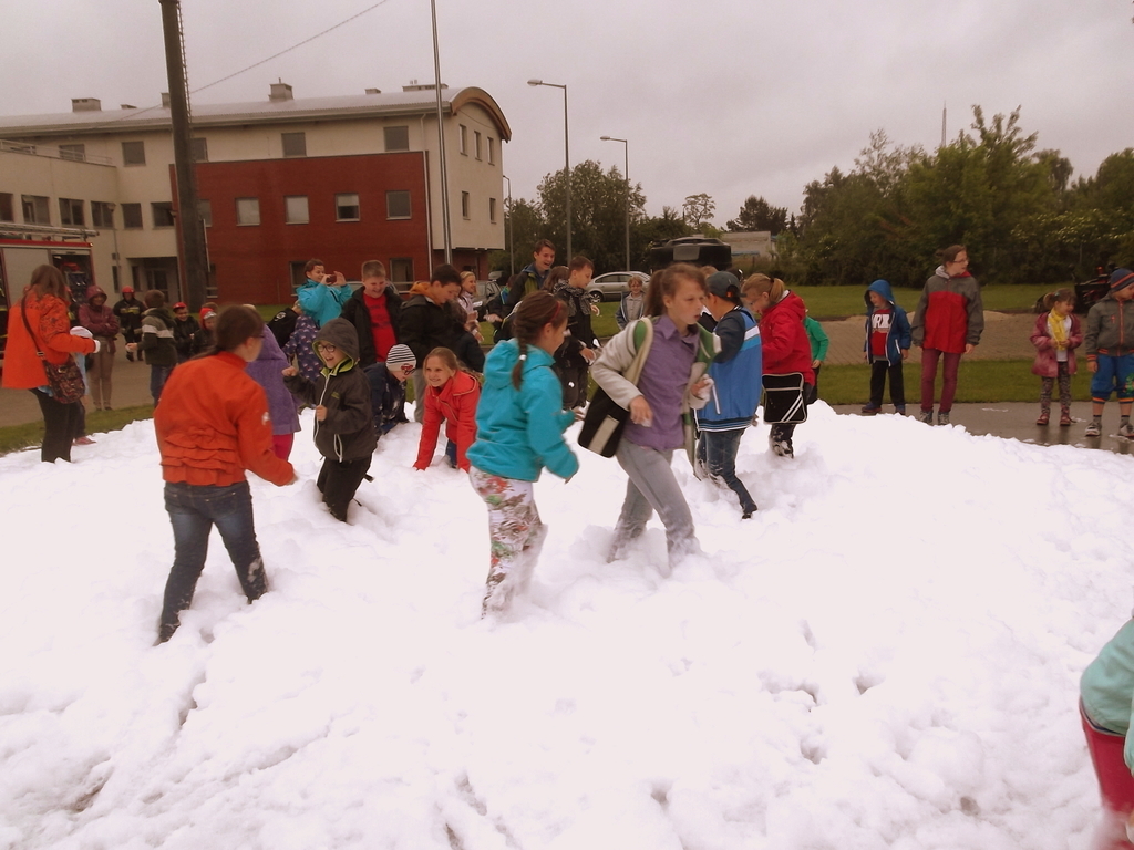 Najpierw przez około dwie godziny uczniowie zwiedzali Komendę Powiatowej Państwowej Straży Pożarnej w Grójcu. Strażacy przygotowali pokazy sprzętu gaśniczego, wozów strażackich, alarmu pożarowego. Największą radość sprawili jednak wytworzeniem dużej ilości piany gaśniczej, w którą można było wejść.