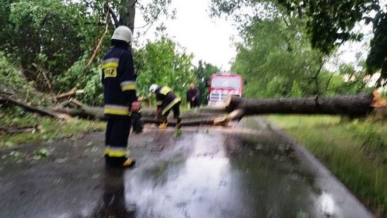 Do działań OSP dołączyła Jednostka z PSP Grójec. Strażacy mieli dosłownie pełne ręce roboty, ogromne wiekowe drzewa zostały powywracane i powalone, przez co drogi stały