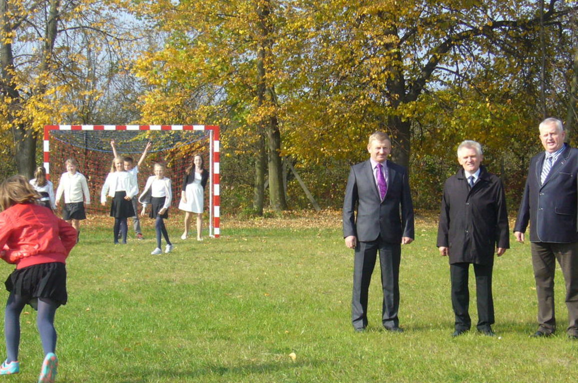 Pozostały wkład pracy i zaangażowanie zawdzięczamy naszej Radzie Rodziców oraz jej Przewodniczącemu – jednocześnie Radnemu Rady Gminy w Pniewach – Panu Wojciechowi Ernestowi. Ze środków Rady Rodziców zakupiona została druga bramka do piłki ręcznej oraz nasiona trawy. Serdeczne podziękowania należą się także Panom Andrzejowi i Tadeuszowi Feliksiakom, których wnukowie uczęszczają do naszej szkoły. Wykonali oni własnym sprzętem prace modernizacyjne boiska – równanie i utwardzanie.