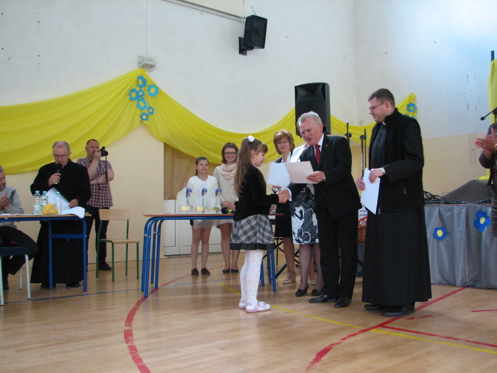 Uroczystego wręczenia nagród dokonali: przewodniczący jury – Ks. kan. Wojciech Kołakowski, Wójt Gminy Pniewy – Pan Wiesław Nasiłowski, gość honorowy – Ks. Krzysztof Mindewicz, oraz sponsorzy na rzecz szkoły Pani Hanna Skonecka reprezentująca firmę PIASTPOL , Pani Halina Wiewiór z firmy MAKSON, Pan Karol Pietrzak- koordynator Wolontariatu Dobre Serce w Grójcu, Pan Rafał Orzechowski- prezes LKS Pniewy , a także dyrektorzy Gimnazjum i Szkoły Podstawowej w Kruszewie: Zdzisław Białacki i Ewa Wójcik.