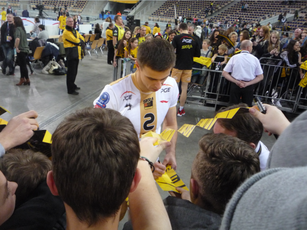 Kolejny wyjazd kibiców z Kruszewa, odbył się 1 grudnia 2015 r. Tym razem podziwialiśmy grę najlepszych Polskich siatkarzy, aktualnych Mistrzów Świata: Mariusza Wlazłego, Michała Winiarskiego i Karola Kłosa, którzy jako zawodnicy PGE Skry Bełchatów w meczu Ligi Mistrzów pokonali 3:0 (23, 25, 18) belgijską drużynę – Knak Roeselare. Mecz odbył się w jednej z największych hal widowiskowo - sportowych w Polsce – Atlas Arenie Łódź. Atmosfera imprezy była niesamowita. Po meczu zawodnicy przyszli do naszego sektora, składali autografy i pozowali do zdjęć. Było bardzo sympatycznie. Warto kibicować i uczyć się od najlepszych, co potwierdza frekwencja na naszych wyjazdach – dwukrotnie „pełny” 50 osobowy autokar.