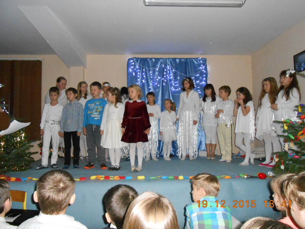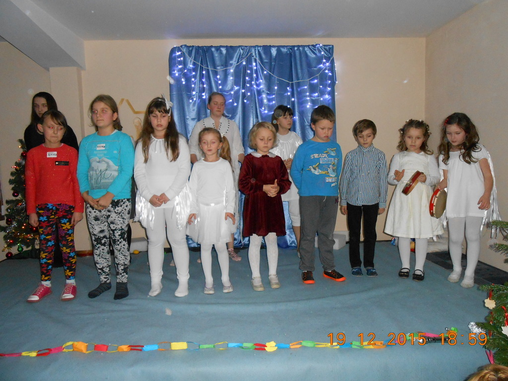 A potem w Aniołkowo, w którym wszyscy byli sobie życzliwi, śpiewali w kanonie razem z aniołkami „Gloria, gloria”, grali na dzwonkach, talerzach i na czym tylko mogli anielską muzykę. Szukali wspólnie dzwoneczka, który by ogłosił światu, że już w czwartek „Święta Zaczynamy”.